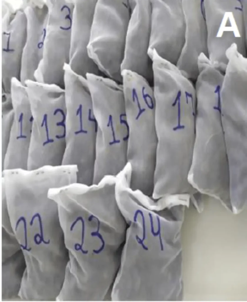 Wissenschaftlicher Versuch mit Netzbeuteln